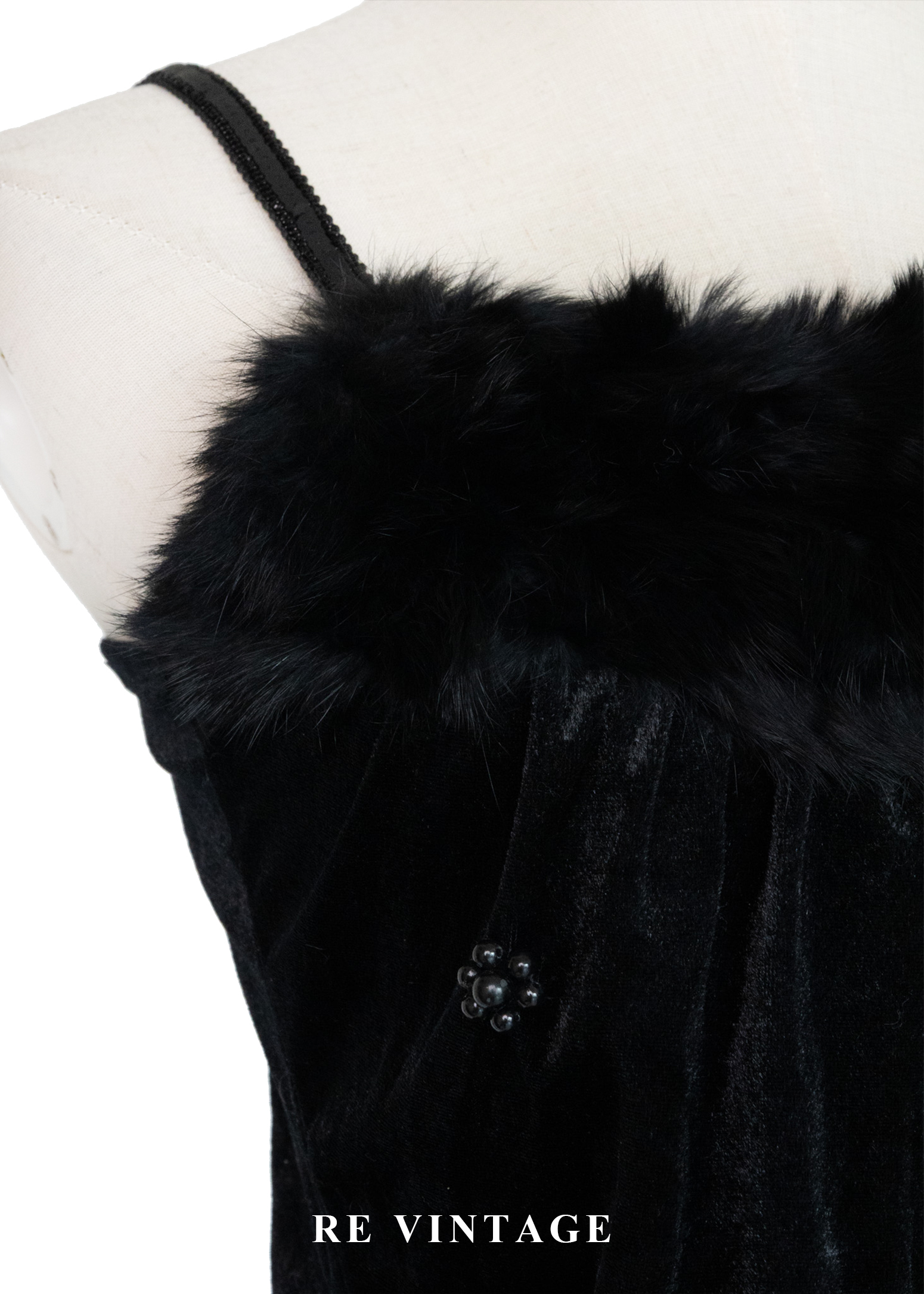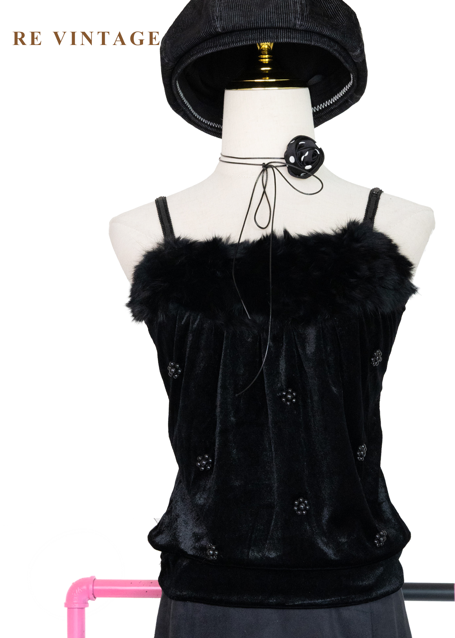 黑絨散落の小花細肩帶背心