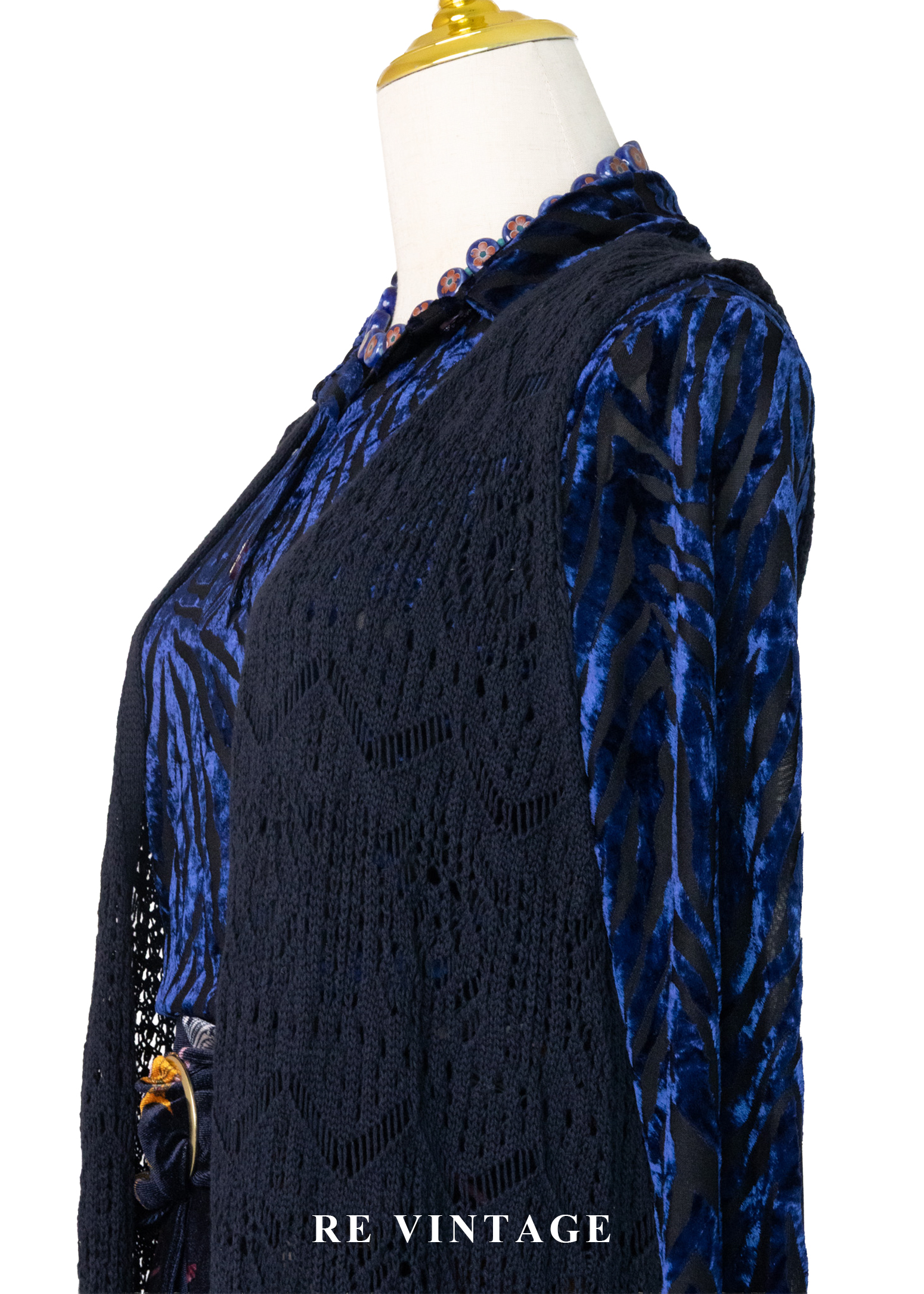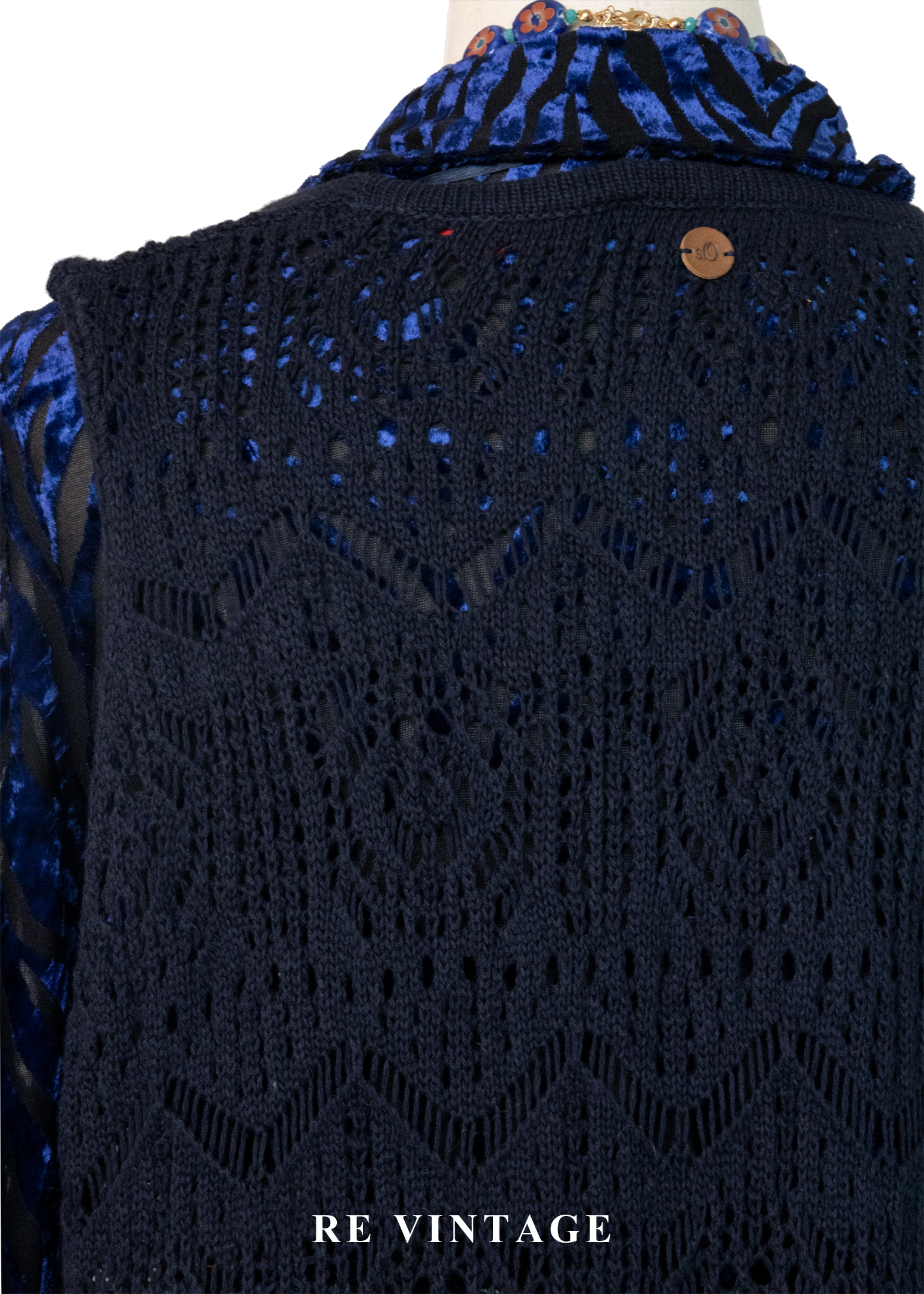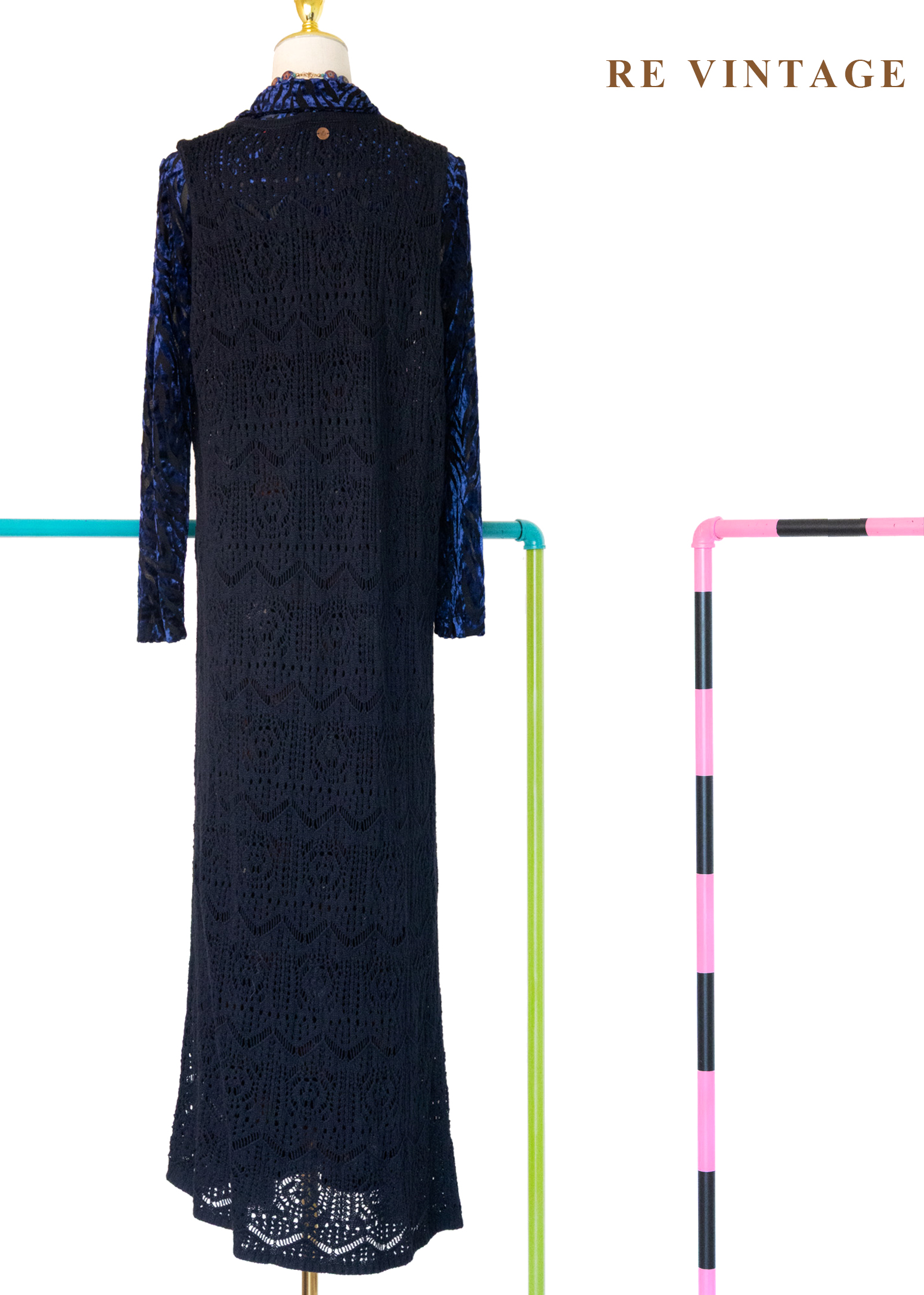 Dark Navy長版圖騰鉤針罩衫