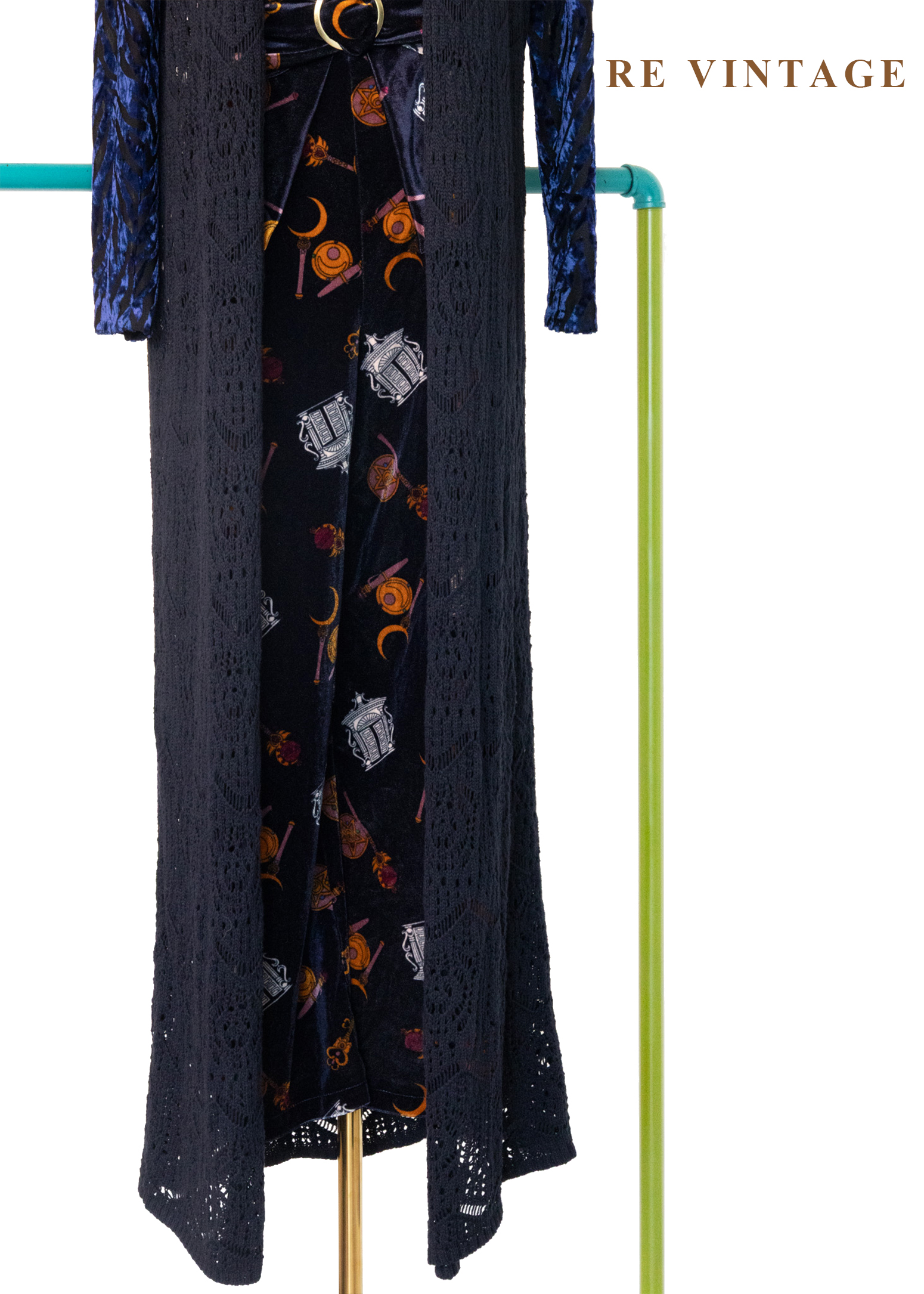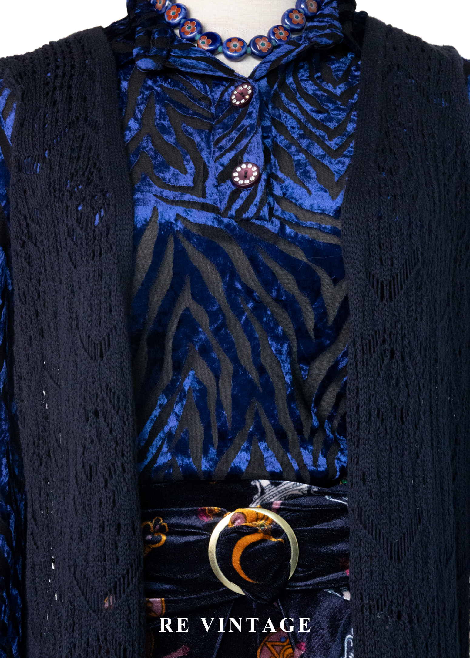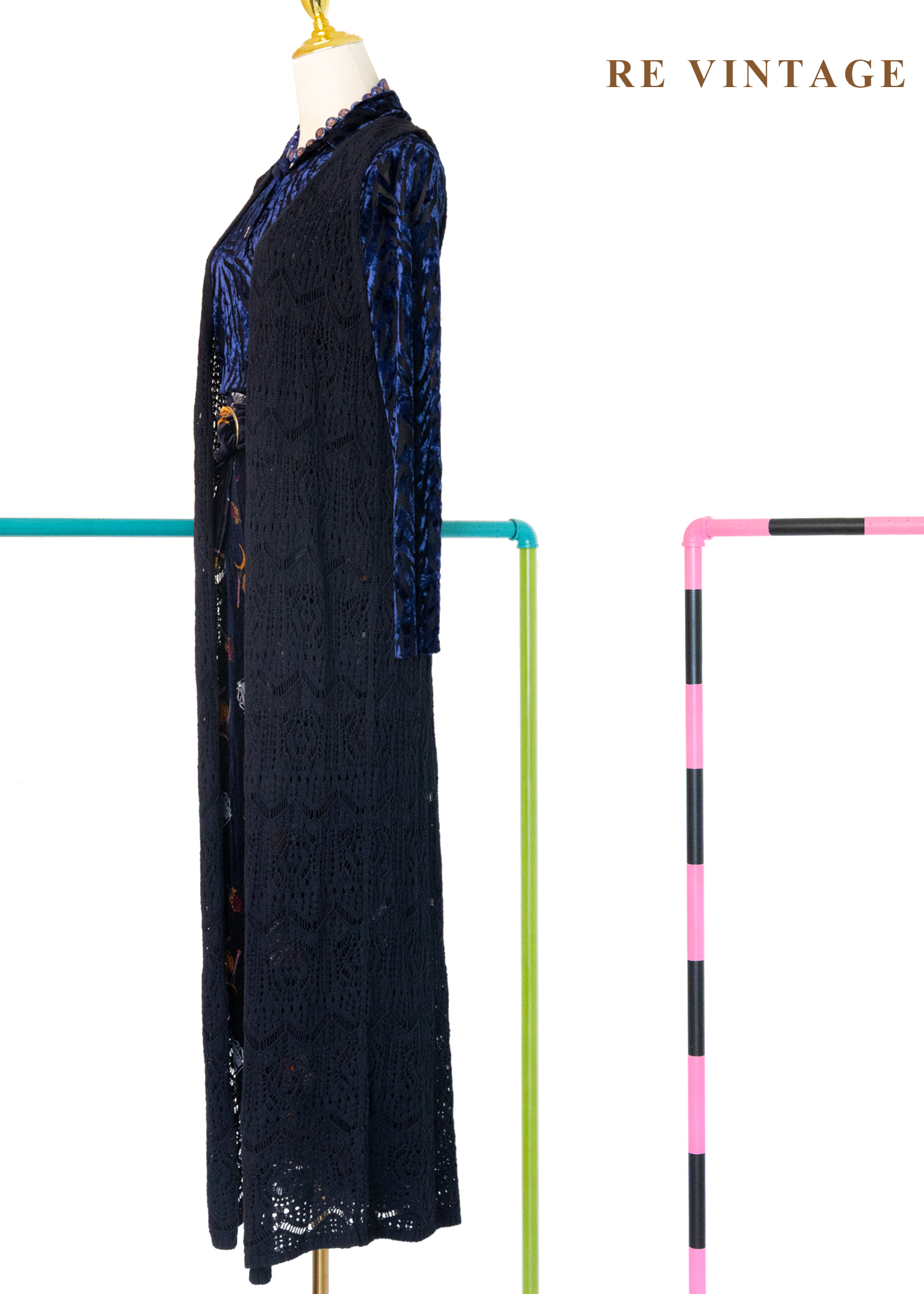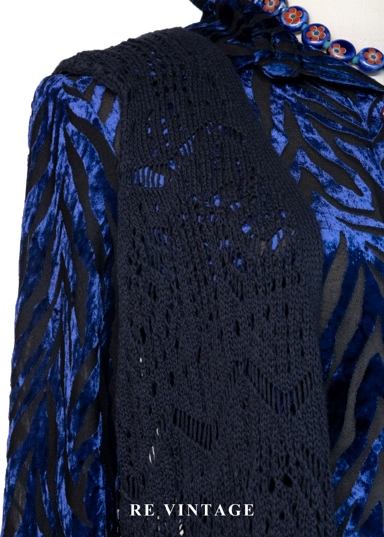 Dark Navy長版圖騰鉤針罩衫