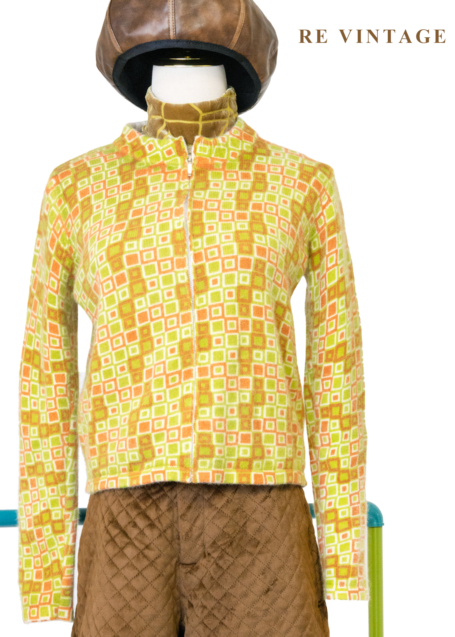 Geometric Spectrum 萊姆綠格紋毛衣外套