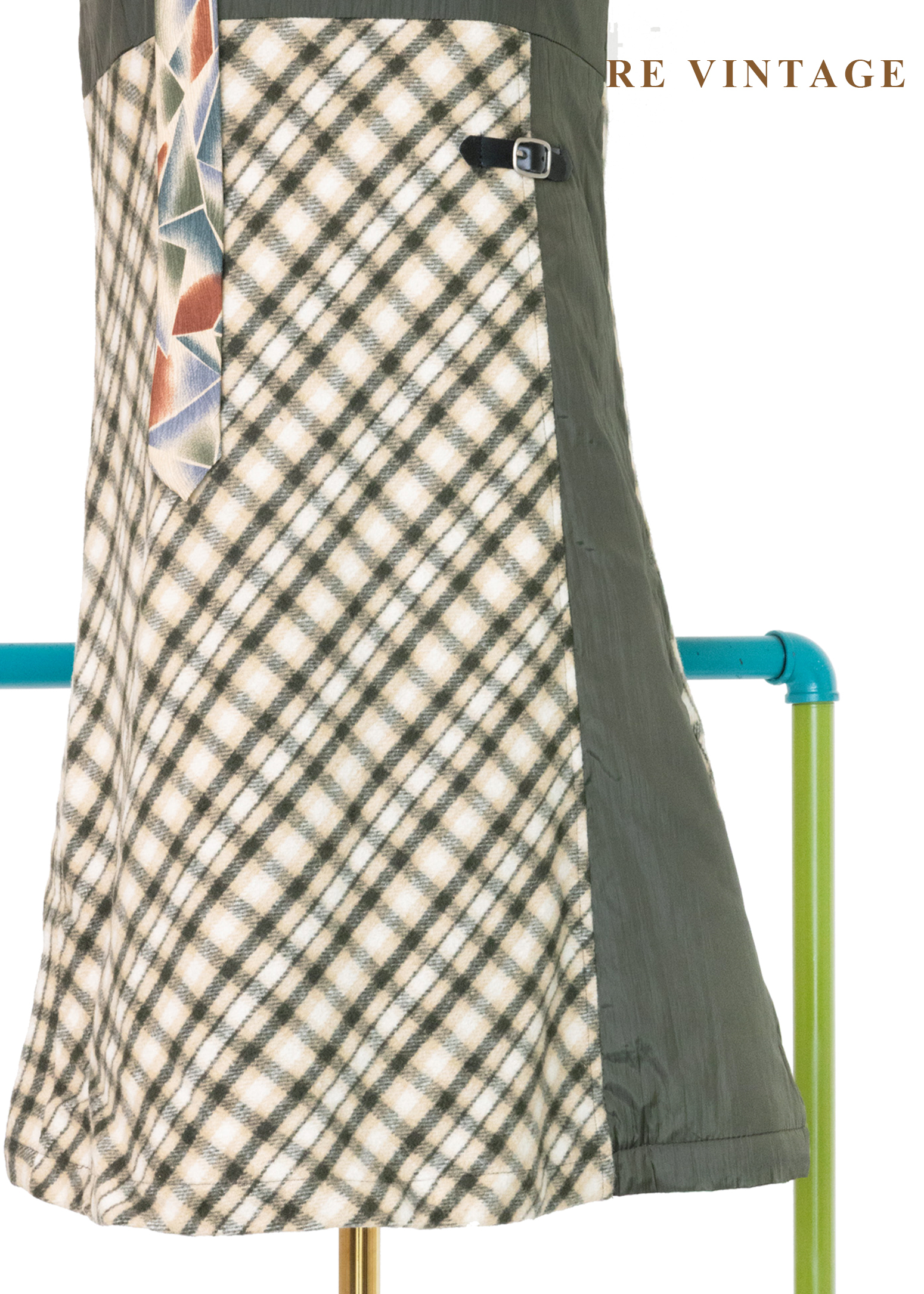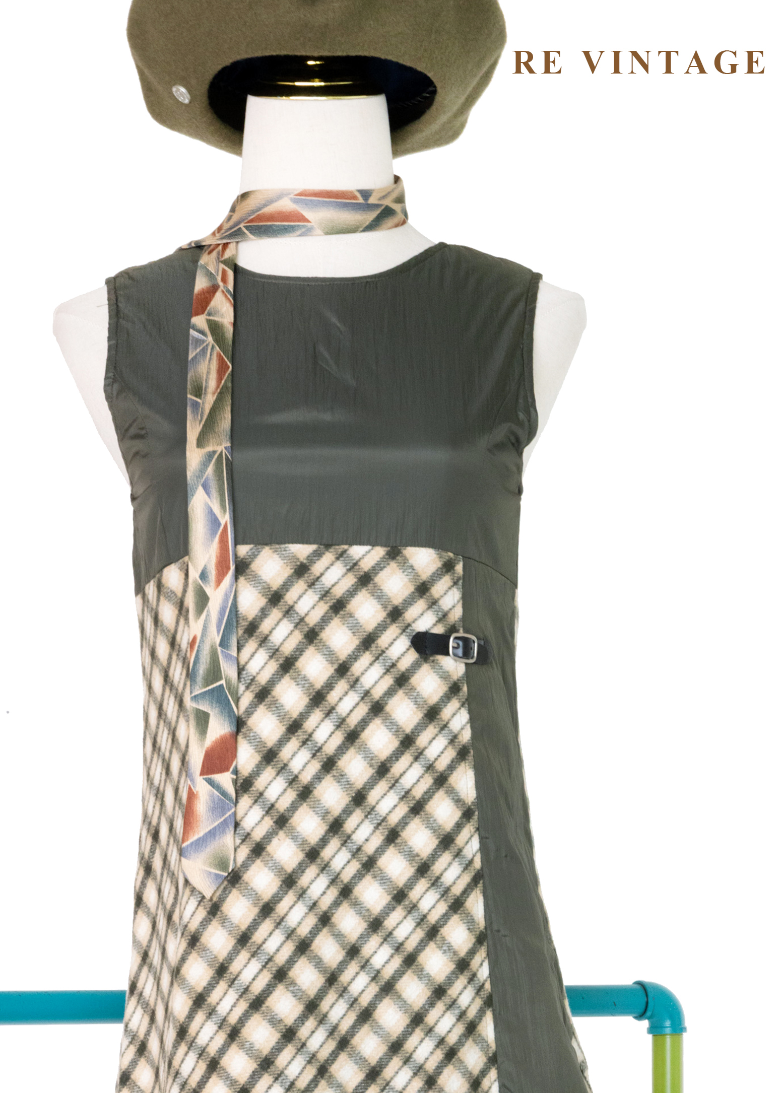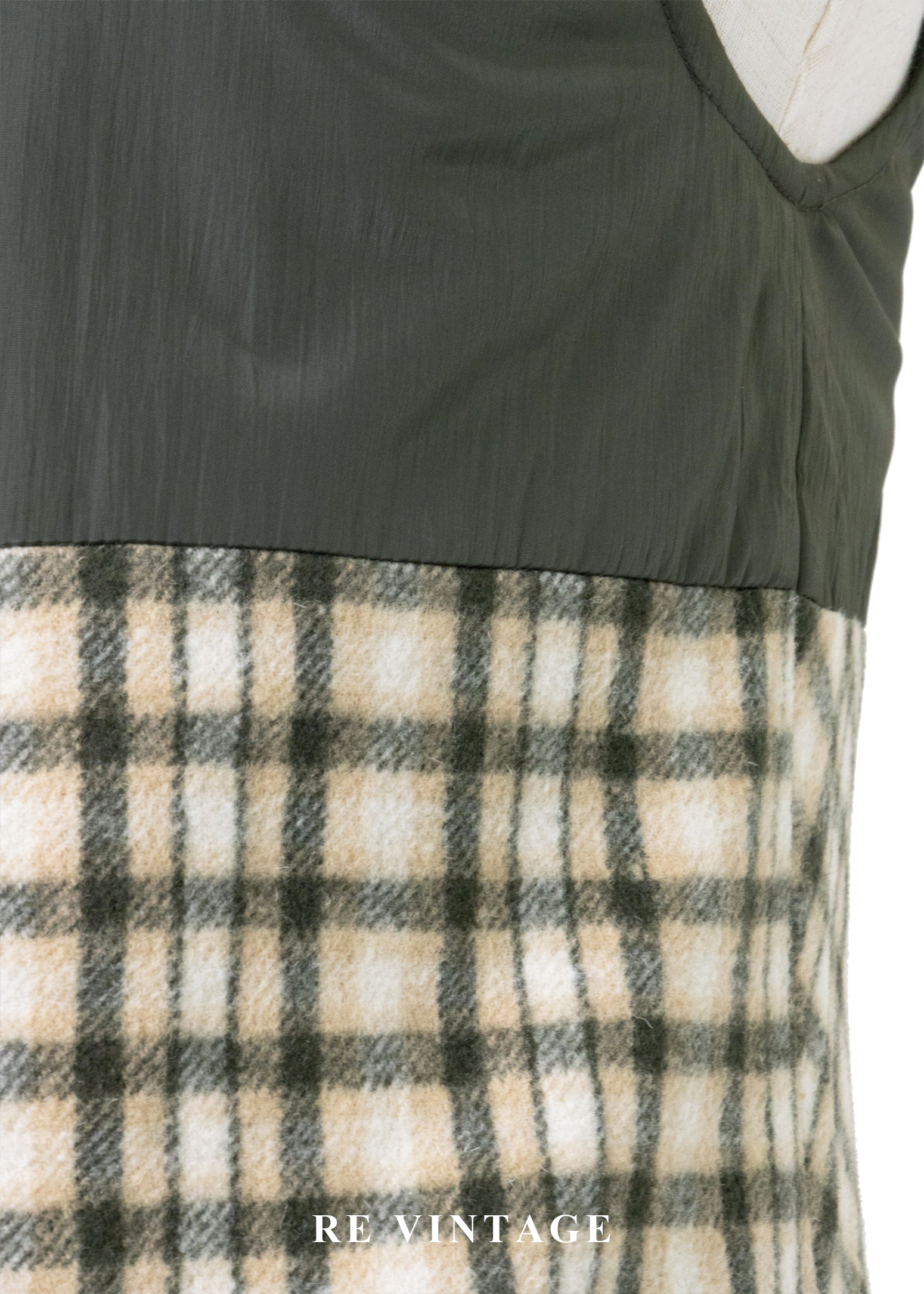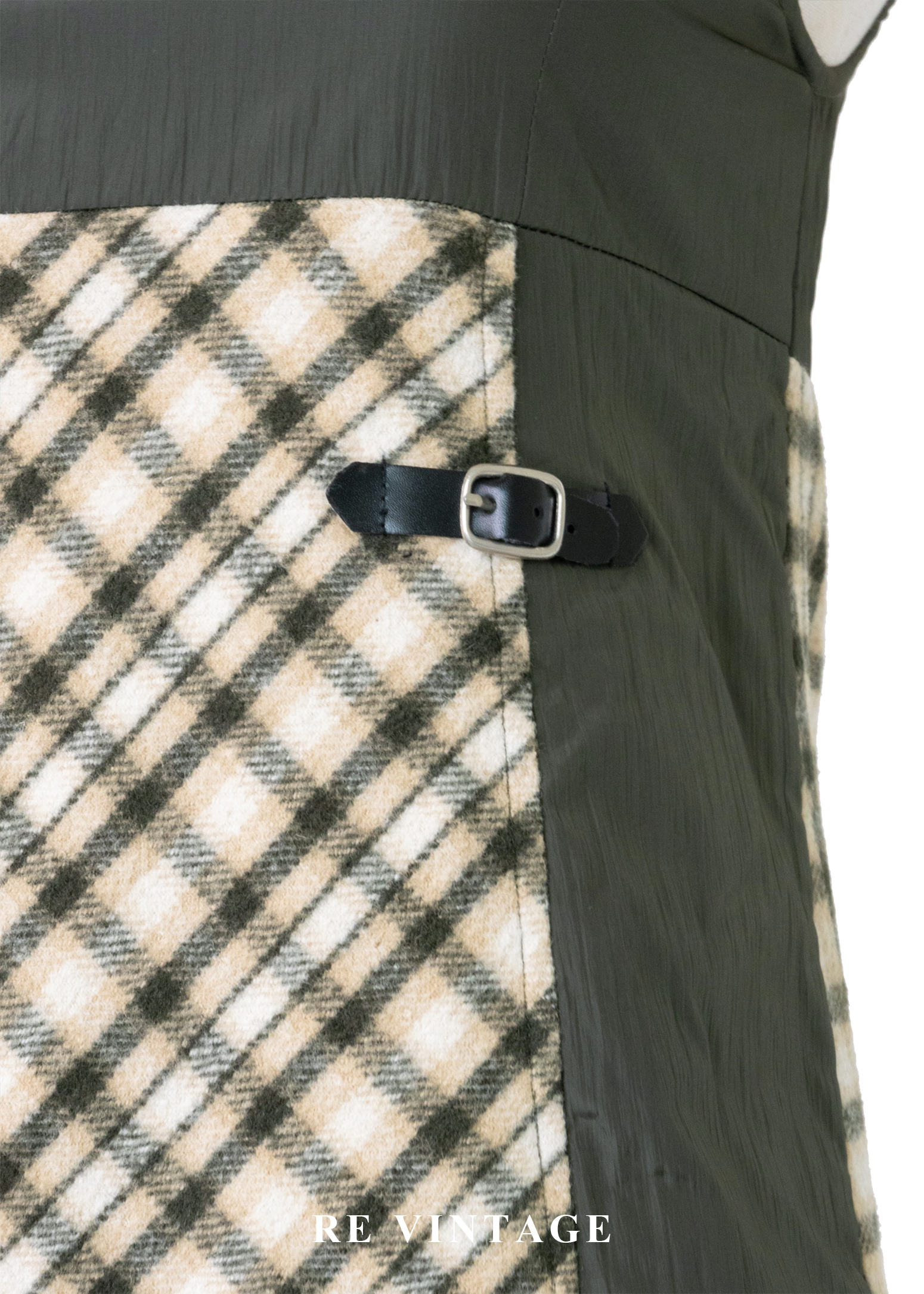 Moss Echo 格紋與尼龍拼接迷人洋裝