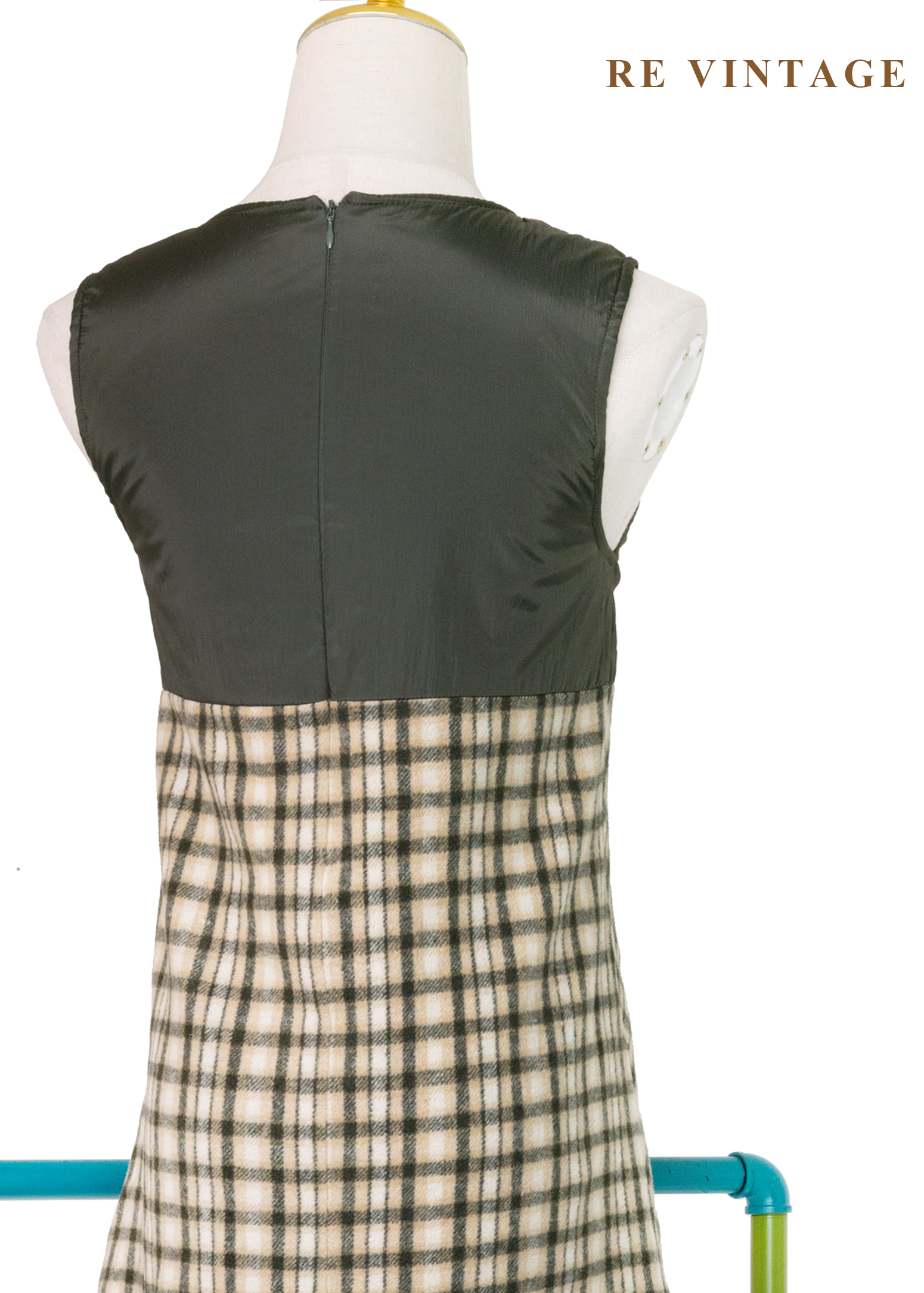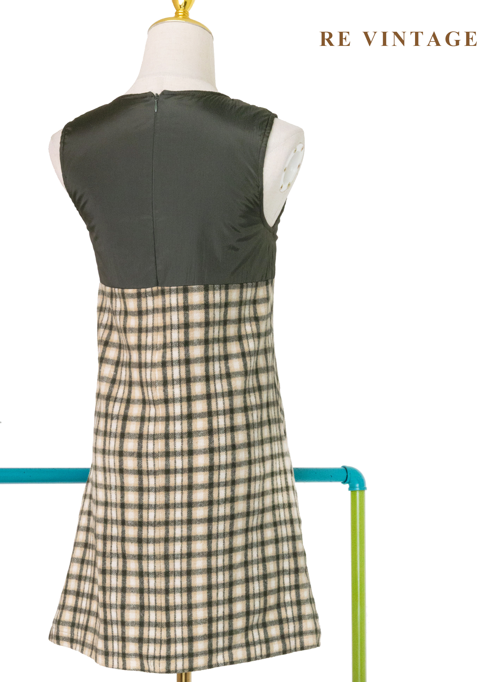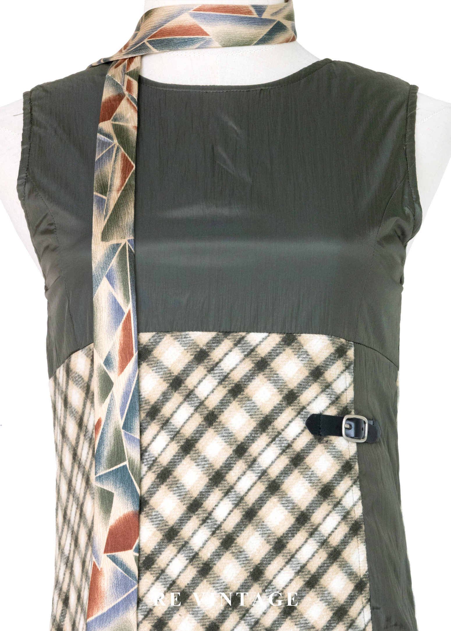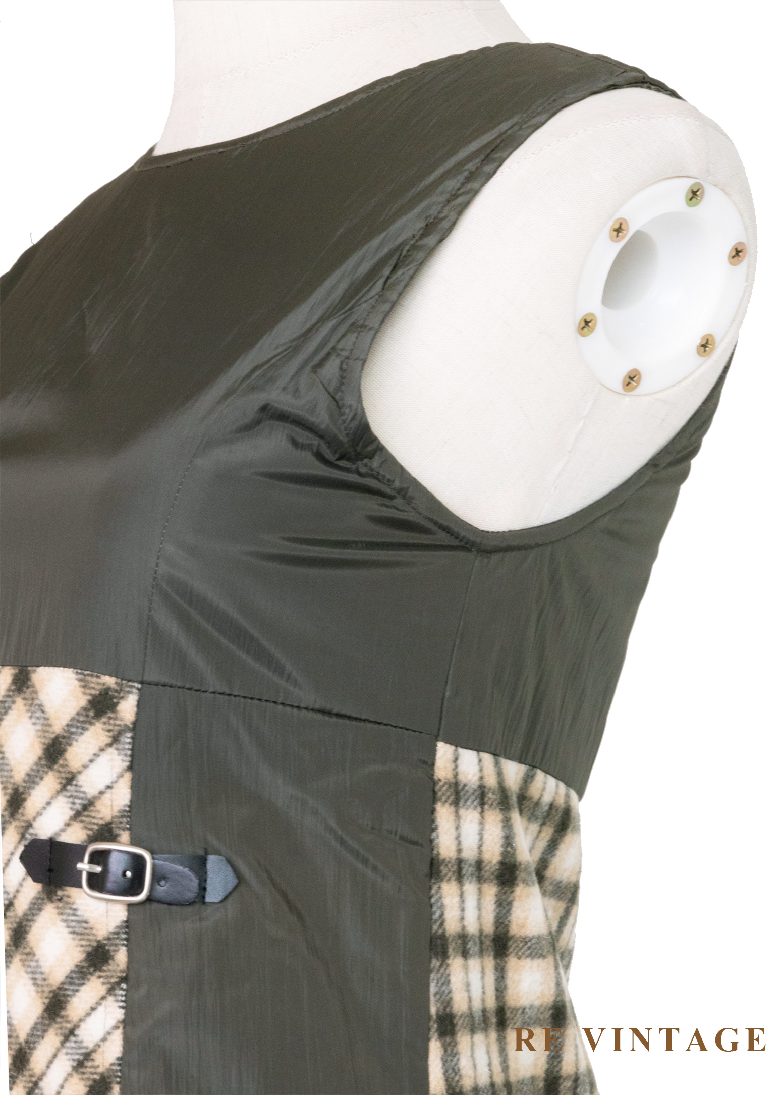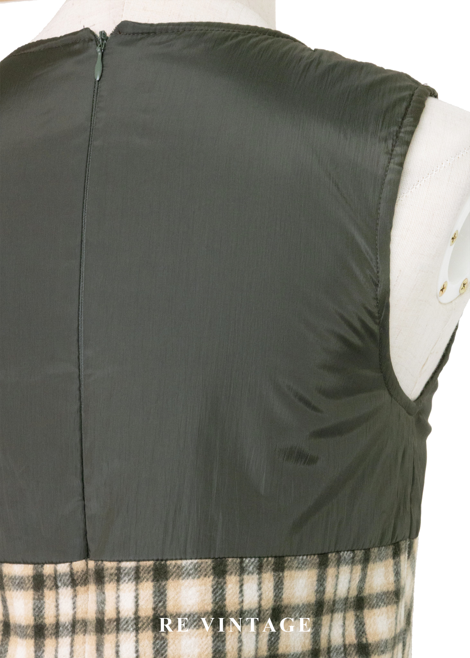 Moss Echo 格紋與尼龍拼接迷人洋裝