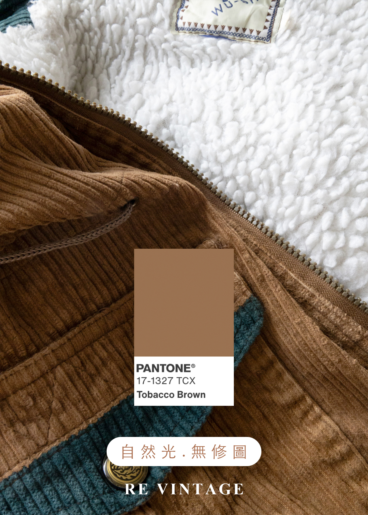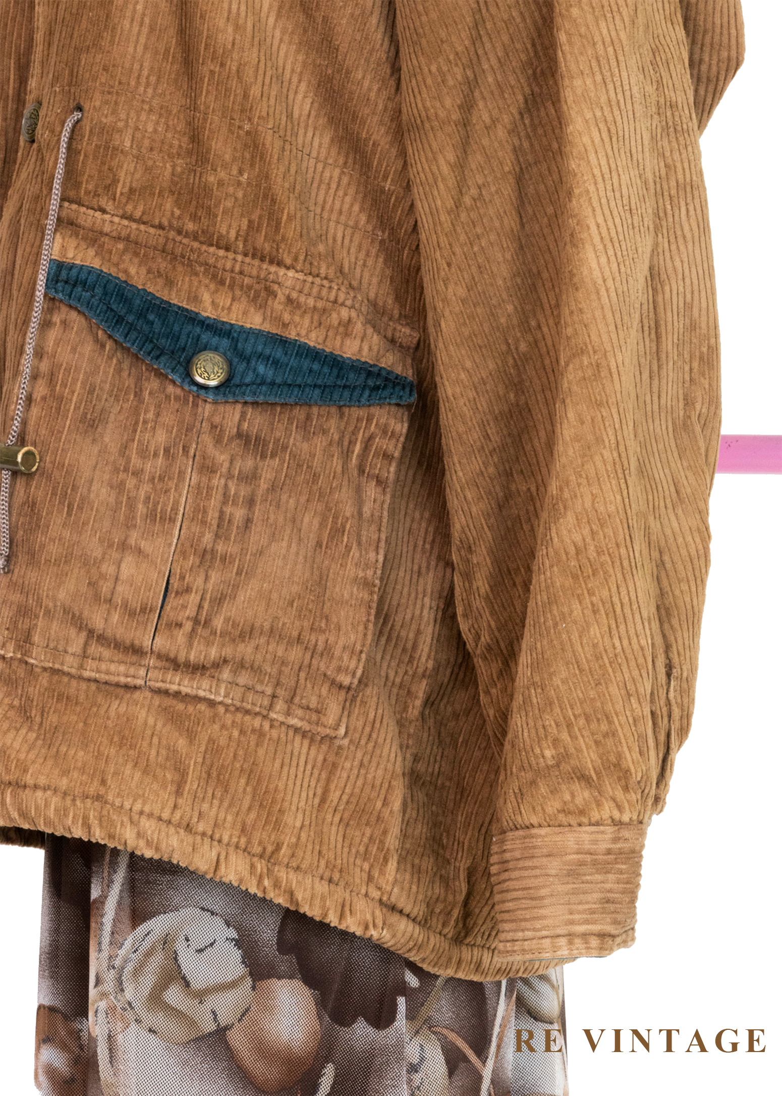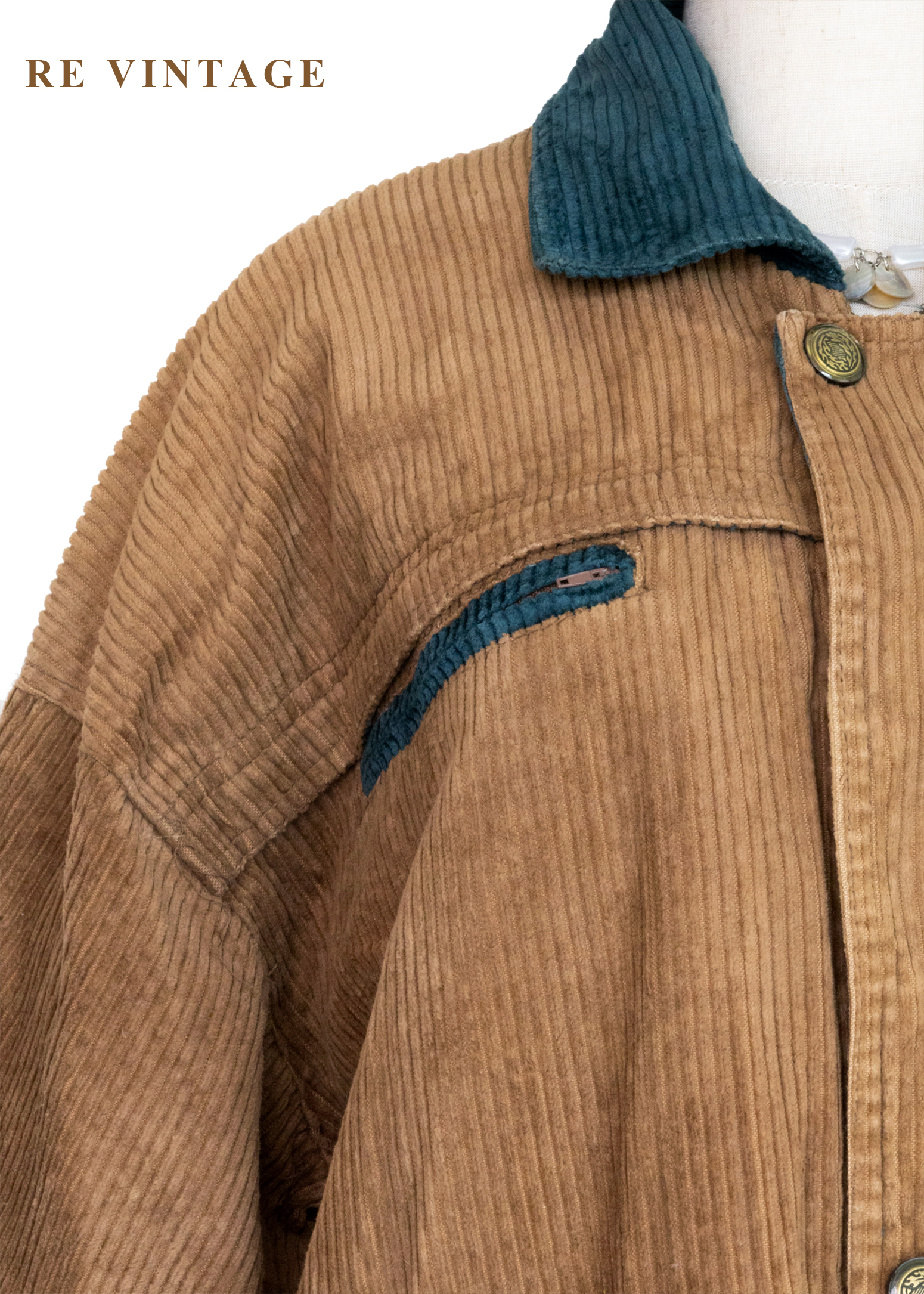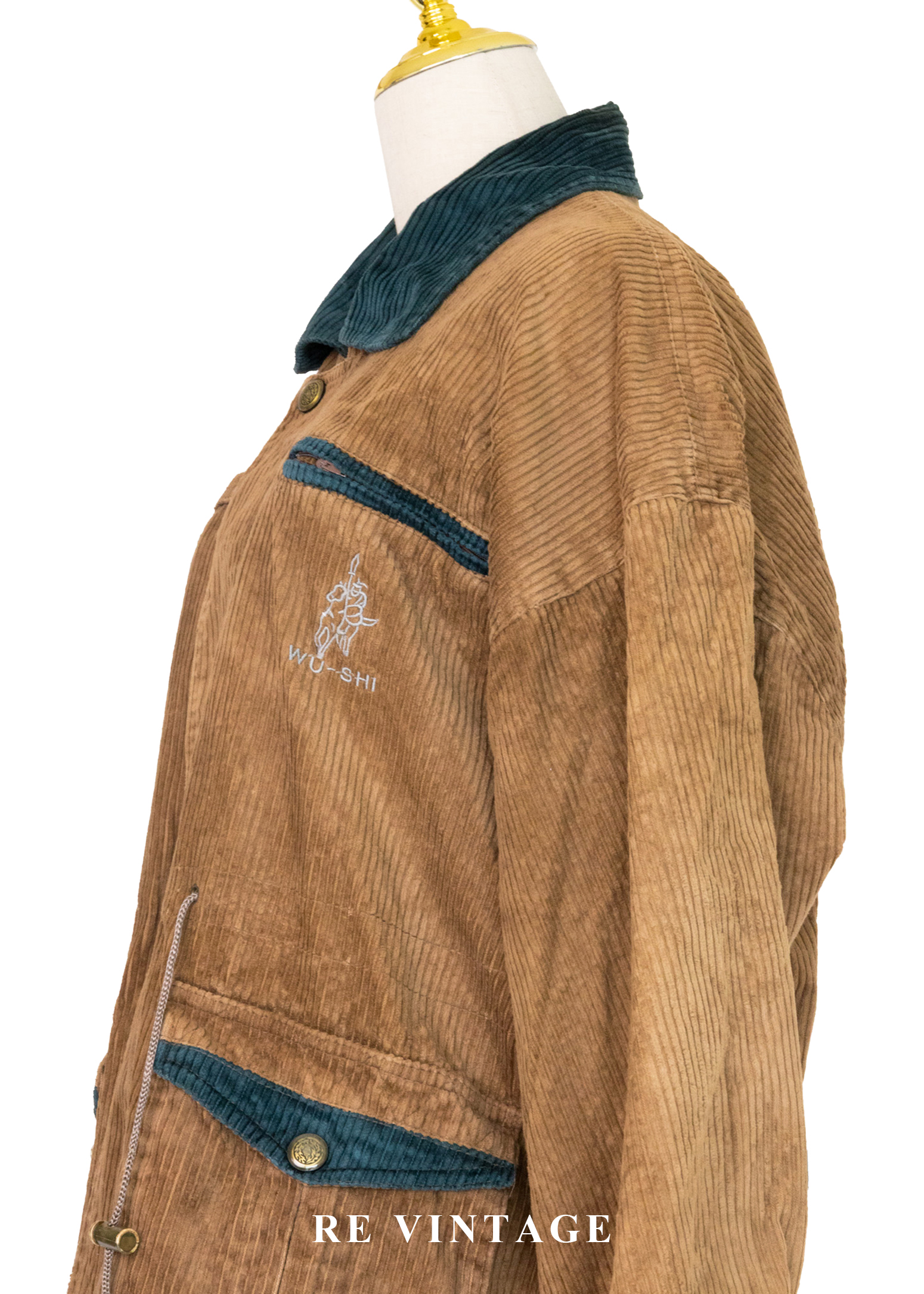 Tobacco Brown 燈芯絨綠拼接夾克外套
