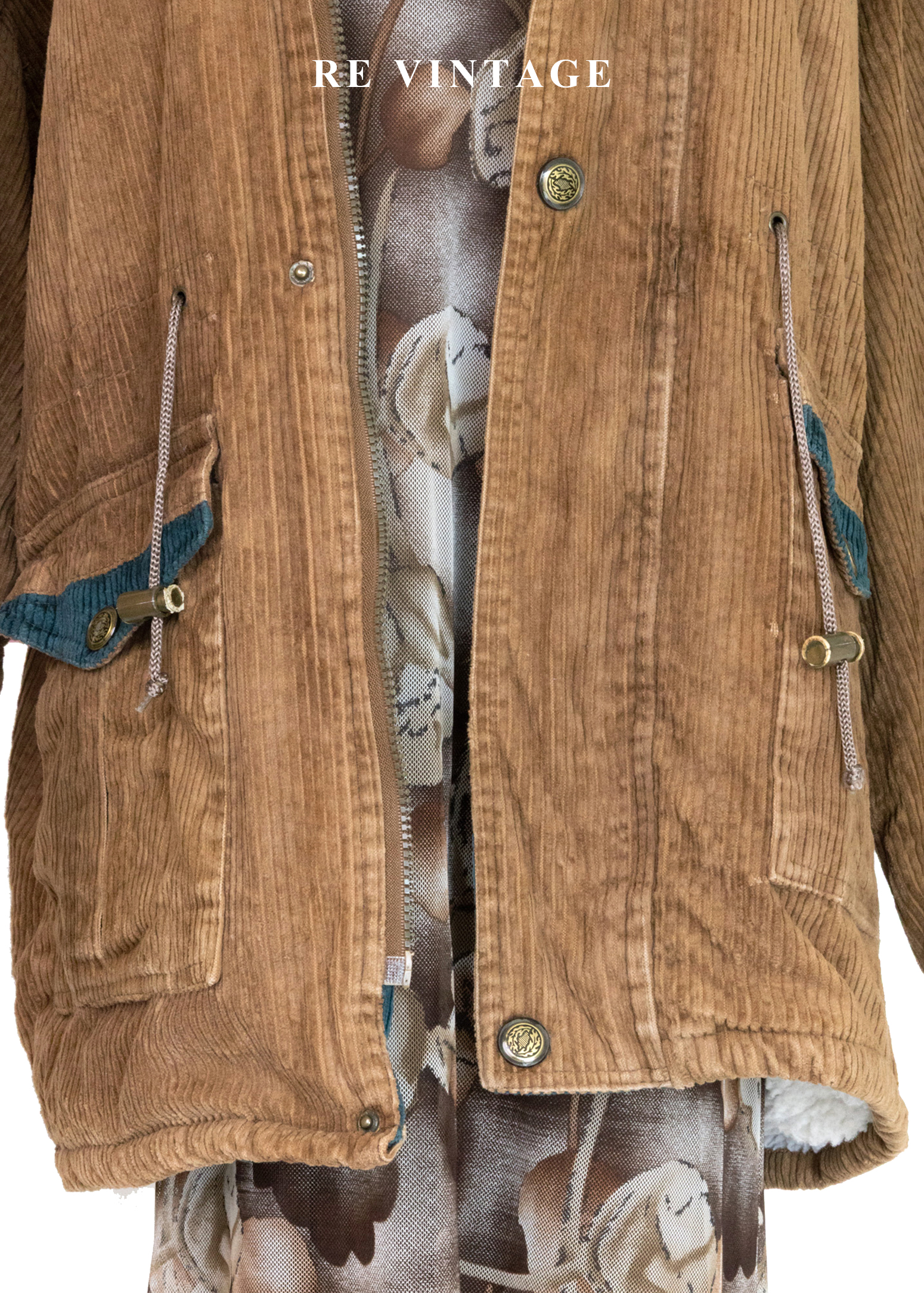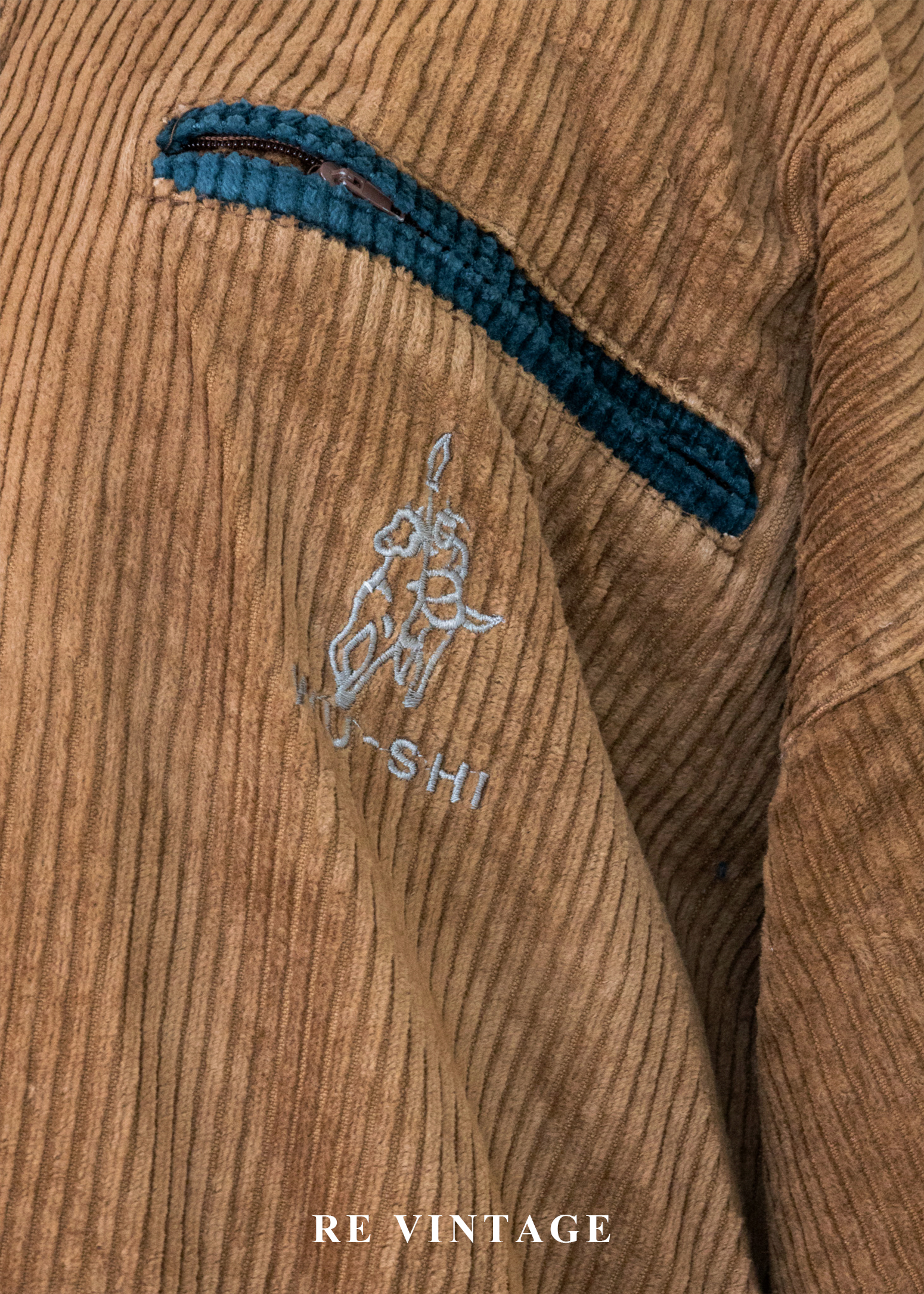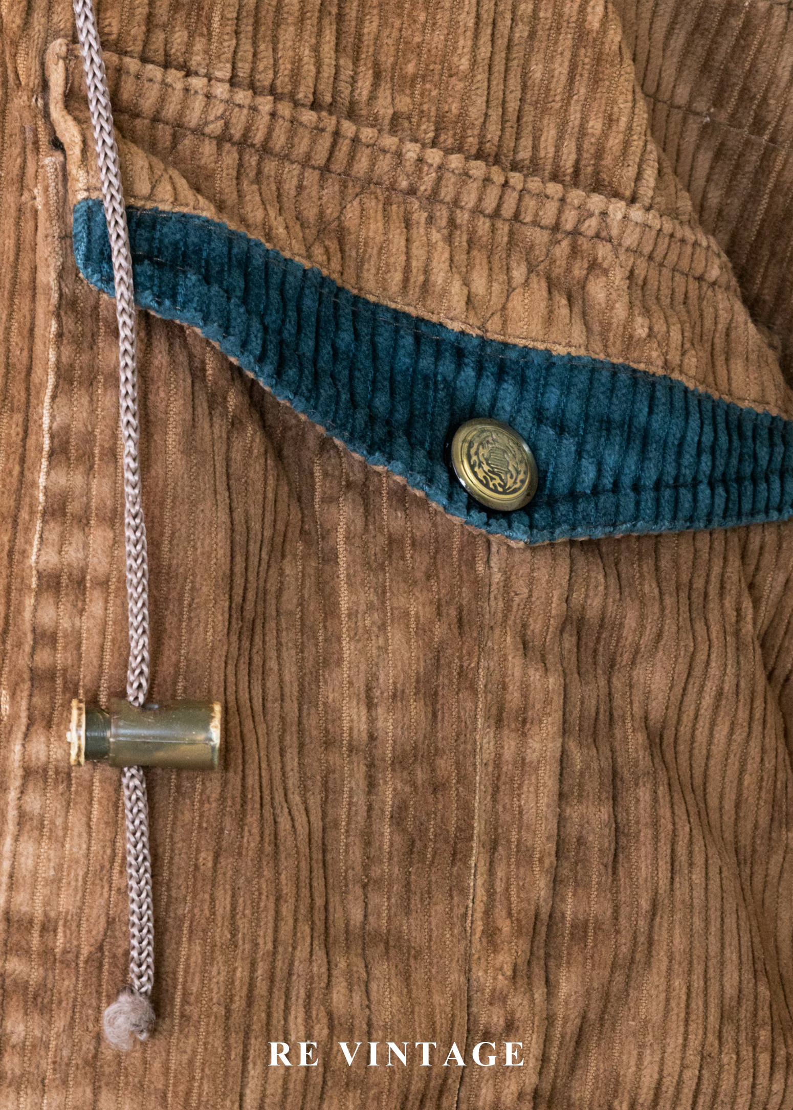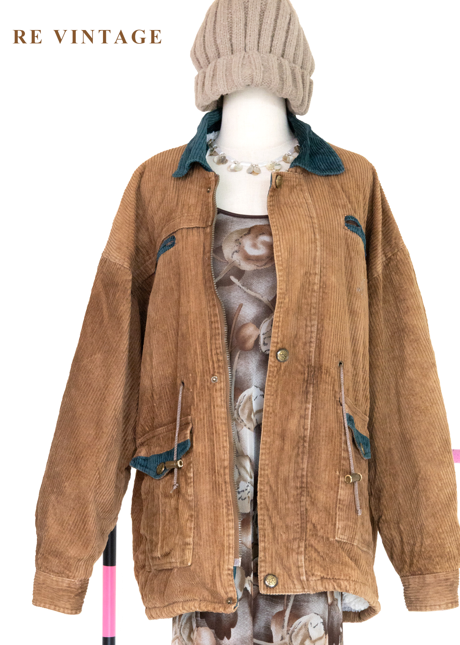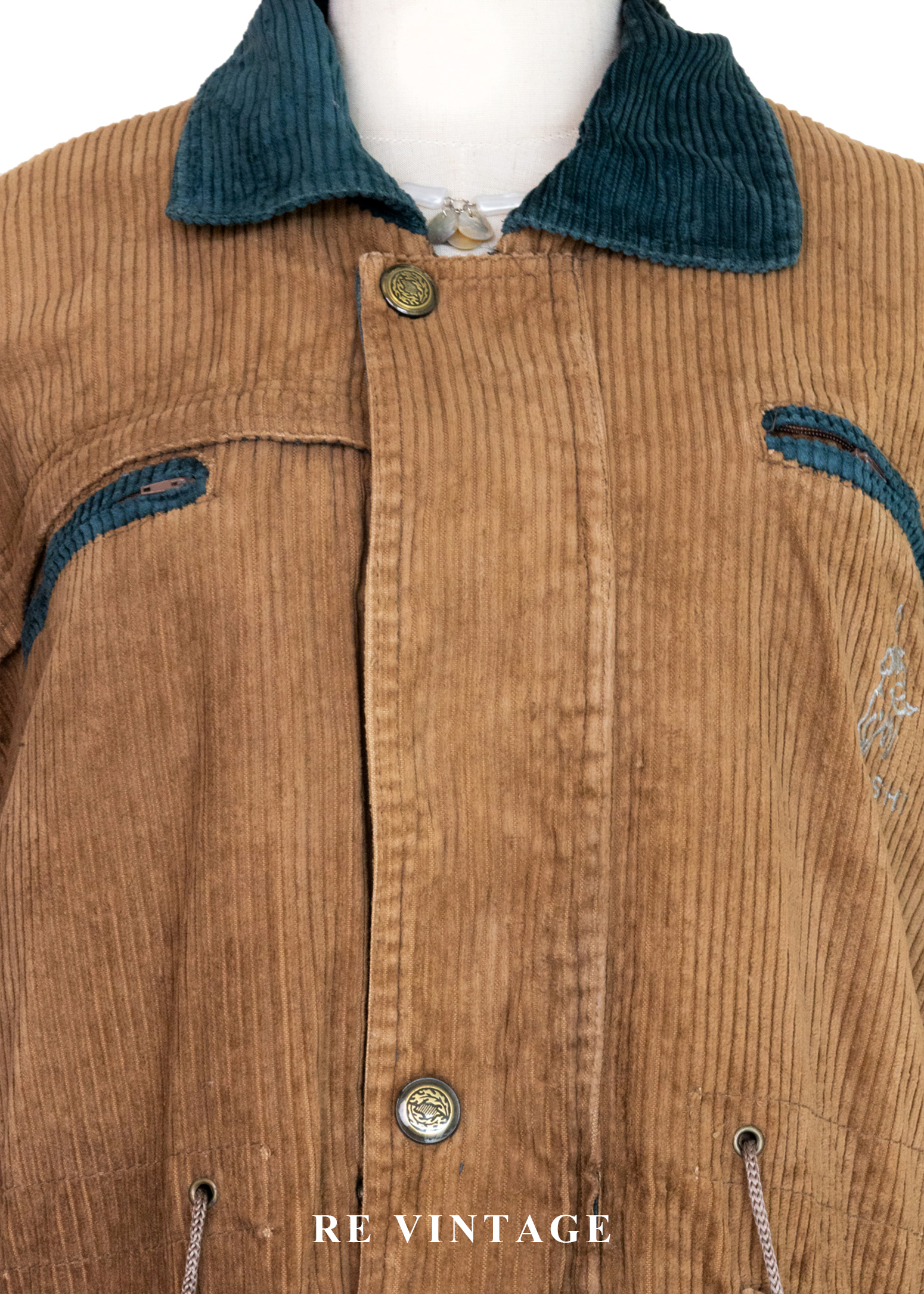 Tobacco Brown 燈芯絨綠拼接夾克外套